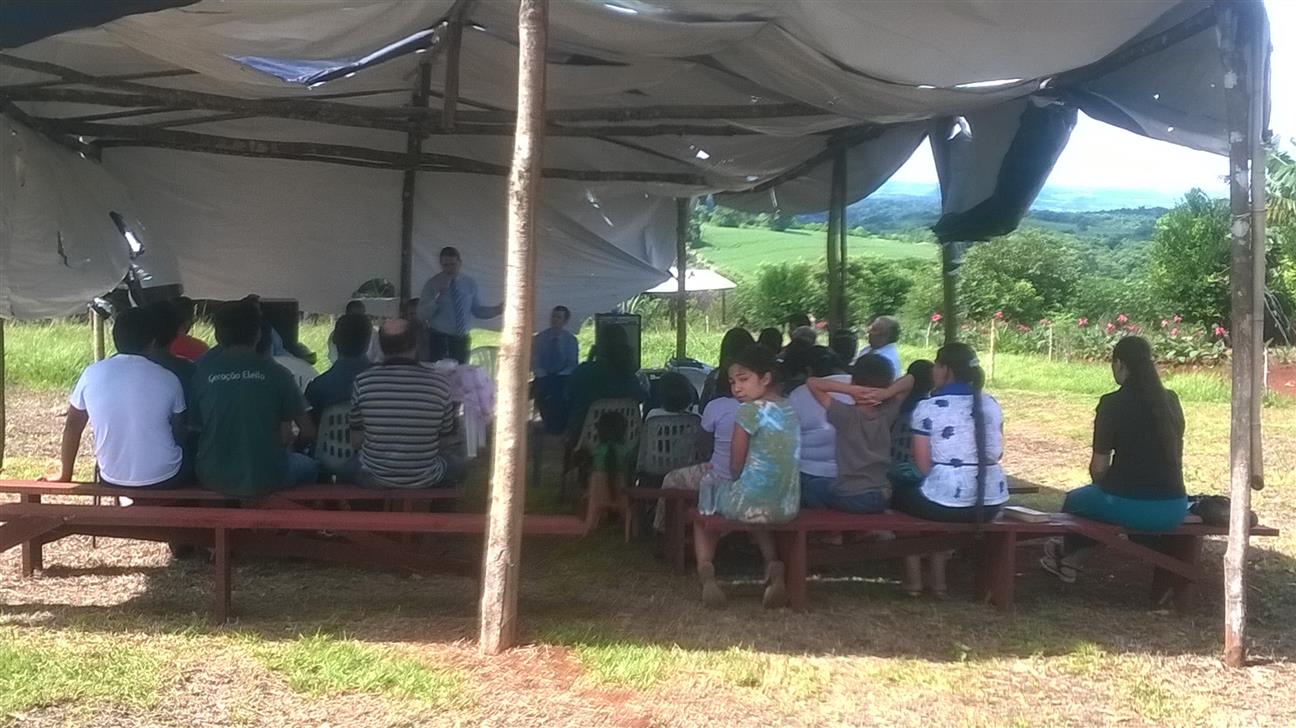 Temos também uma linda congregação própria no interior de Vista Gaúcha. Quando chegamos aqui, há três anos e seis meses, era neste local que cultuávamos a Deus debaixo de árvores.