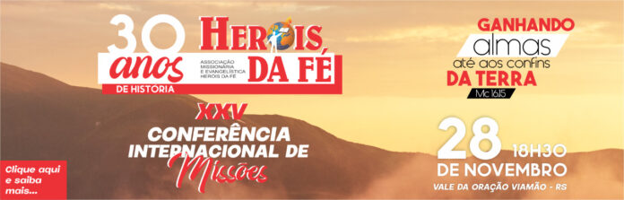 Participe conosco da XXV Conferência Internacional de Missões Heróis da Fé, no ano em que a Associação Missionária e Evangelística Heróis da Fé completa seus 30 ANOS!